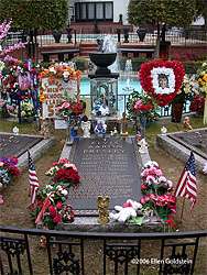 The next day we took in Graceland and Sun Records…the former dedicated to The King, and the latter where he recorded his first hits. I’ll try and describe Graceland, although I feel doomed to failure. It’s not just a house that’s been decorated a bit…unusually. It’s a sprawling document to the monumental impact that one performer had on our culture, and how our culture reflected it back to him. Separate exhibits highlighted his recording accomplishments, memorabilia created to merchandise Elvis (Elvis Lipstick – "Be on my lips always") displayed alongside homemade portraits (and trophies) sent to him by fans, stage costumes, posters from more than thirty movies, a collection of cars and motorcycles, even his private jet, the Lisa Marie. Each of these exhibits conveniently funnel patrons into vast souvenir shops where every conceivable type of Elvisiana can be found. The total effect of all this was overwhelming, and moving. Elvis’ standing among the faithful seems much closer to that of a religious figure than an entertainer. Sun Records was quite a contrast…a small brick building virtually unchanged since the mid ‘50s, where we were given a tour (with soundbites) of the studio that launched the careers of Elvis, Carl Perkins, Jerry Lee Lewis, Roy Orbison and Johnny Cash. Ellen photographed me with Elvis’ microphone, in front of a giant blow-up photo of Elvis singing into the same microphone, and I plunked a few Jerry-Lee-like chords on the spinet piano. An engineer, preparing for a session later that afternoon, looked up and I stopped as suddenly as I had started.